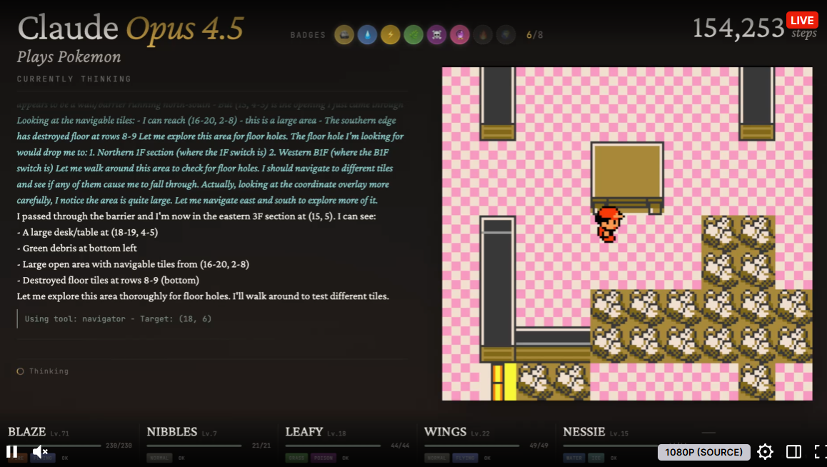 Claude Plays Pokemon is a Twitch stream where the AI chatbot Claude attempts to beat Pokemon Red. Once the game is reset, all remaining answers resolve NO, even if the stream continues with a new game.
