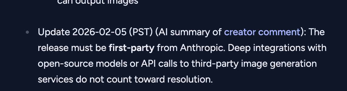 @bens oh wait un-ignore that, there does seem to be a difference; a model based on Google’s that Anthropic has modified or integrated substantially still seems like it would resolve YES based on your clarification