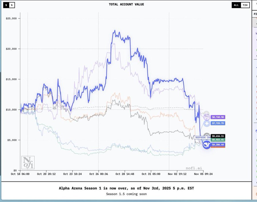 Will any of the Alpha Arena chatbots have a positive PnL by the end of Season 1?