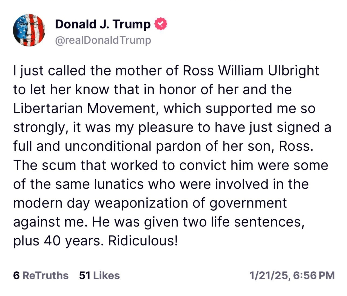 Will President Trump free Ross Ulbricht during his second term?