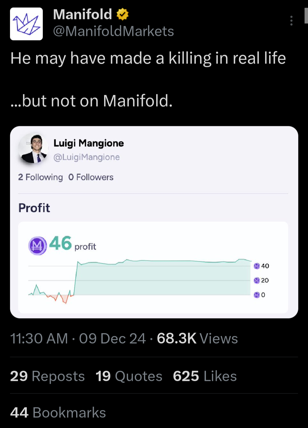 On December 9th, Manifold's X account posted "He may have made a killing in real life