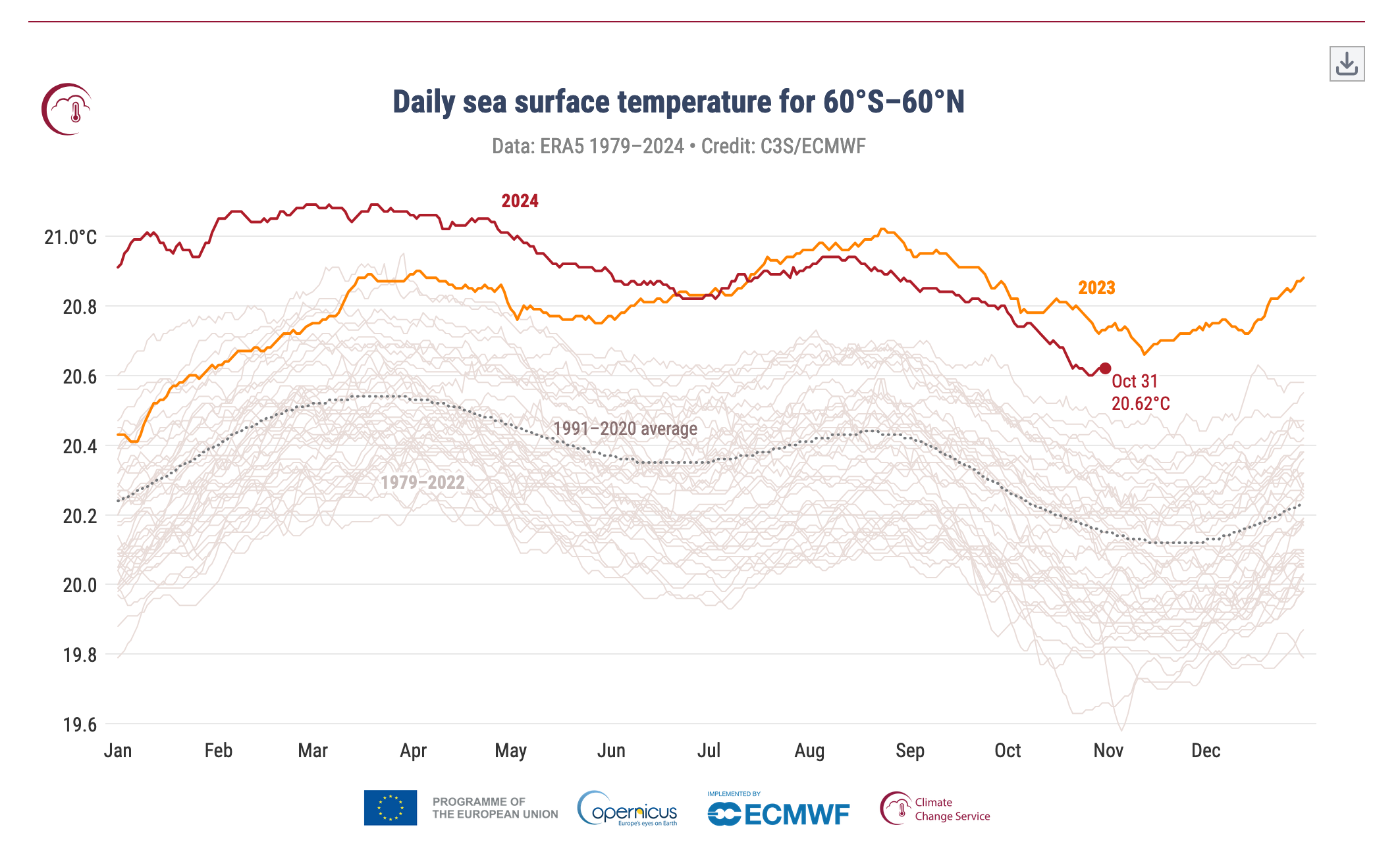 • January 2025 was the warmest January globally, with an average ERA5 surface air temperature of 13.23°C, 0.79°C above the 1991-2020 average for January.