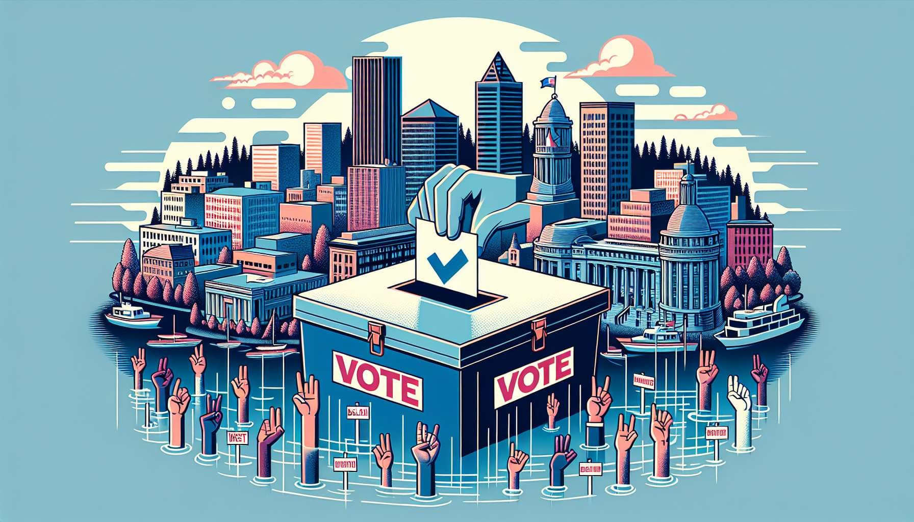 In 2022, 57% of Portland voters approved changes to the city charter that will transition the city government to ranked-choice voting, a 12-member city council elected by district, and a mayor elected citywide to oversee services with a city administrator. Each district will elect three council members using multi-winner ranked-choice voting.