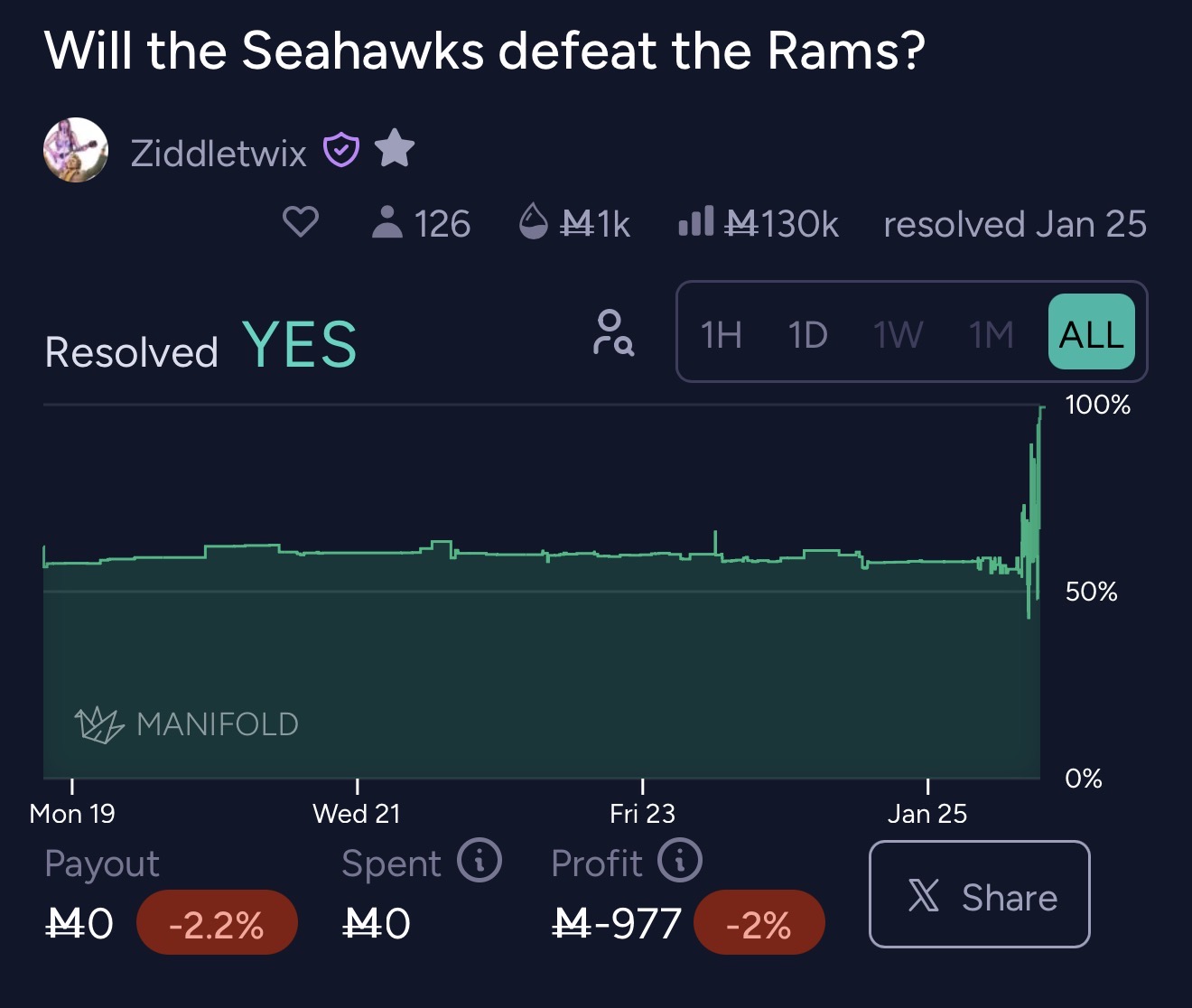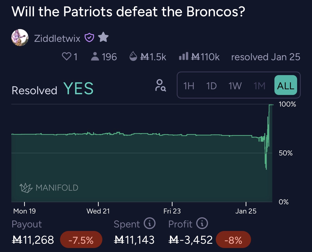 @a_l_e_x there you go, I didn’t even know how this market was so profitable since I was sleeping and forgot about this market 😂. I can get information faster and trade accordingly but people can still bet against me and win because sports are swingy