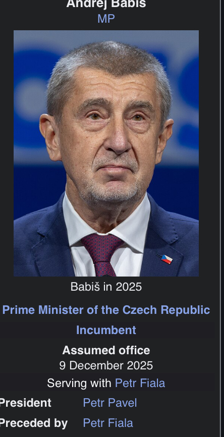 Andrej Babiš becomes Prime Minister of Czechia after October 2025 elections