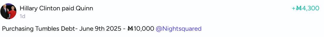 @traders There is an issue here that I think warrants attention, which is that the resolution criteria as written should arguably resolve YES because Tumbles sent me 10,000 counterfeit Mana. I think it's more appropriate to go with the spirit of the market, so I won't be resolving YES (yet). However, also in the spirit of the market, I am tentatively planning on resolving YES if someone buys my debt for at least M3060 on behalf of Tumbles. (Or if there is some other similar payment scheme that pays me at least M3060 for the debt before the due date)