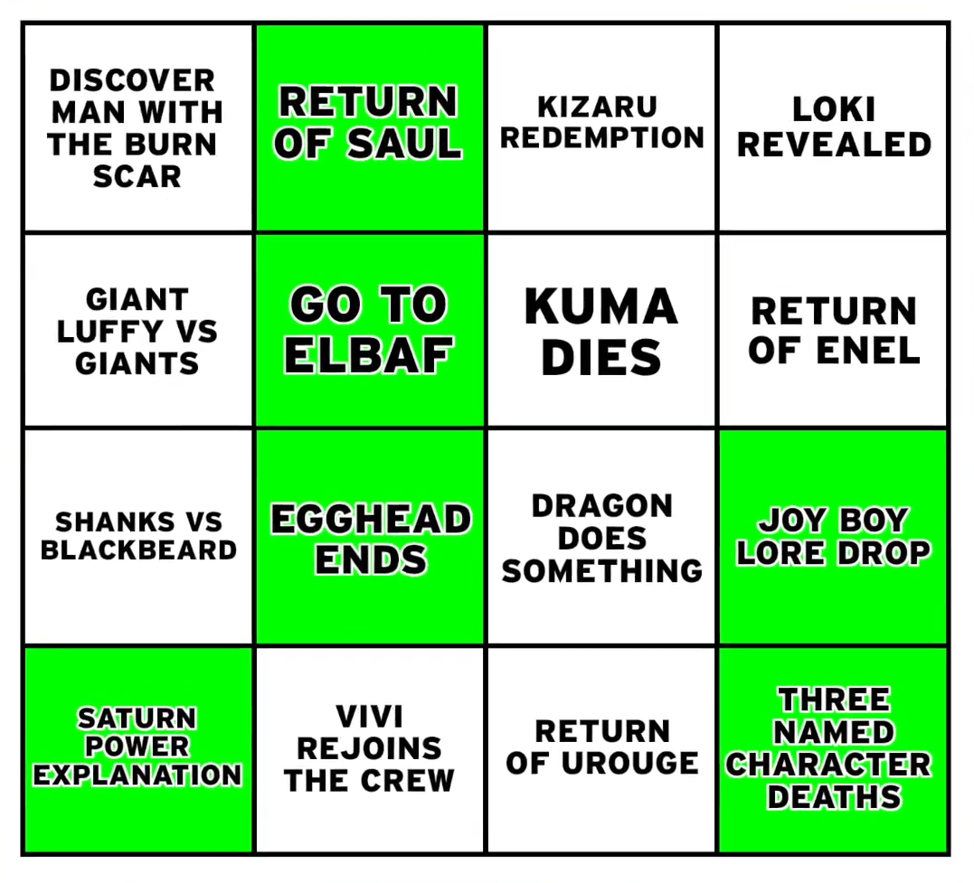 How many One Piece 2024 bingo predictions will come true?