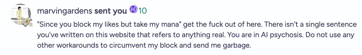 As seen in the screenshot, @marvingardens has resorted to ad hominem attacks and labels like "AI psychosis" because he is fundamentally unable to perform a structural audit of the 8v Raptor Claw or the 9r Vascular Puzzle.