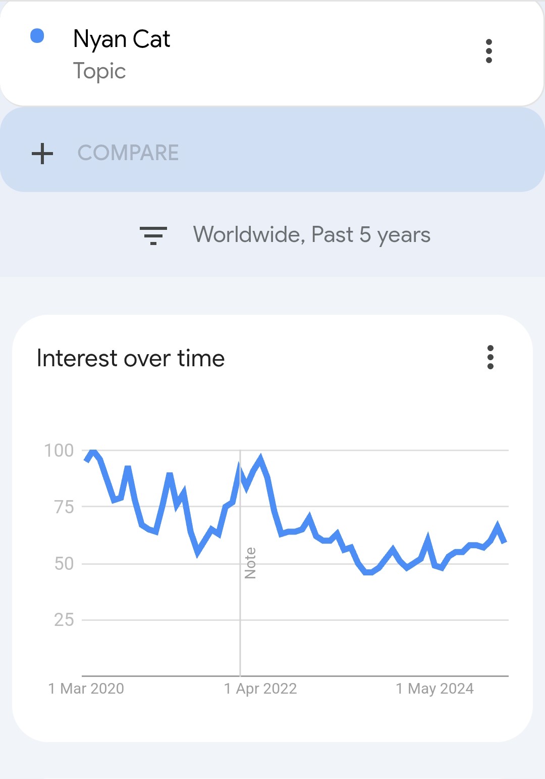 This question resolves as YES if there is a significant resurgence of the nyan cat meme before January 1st 2025, as measured by Google trends worldwide