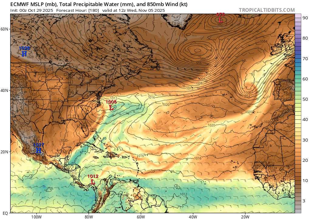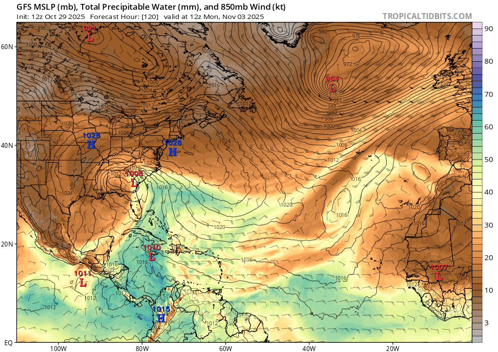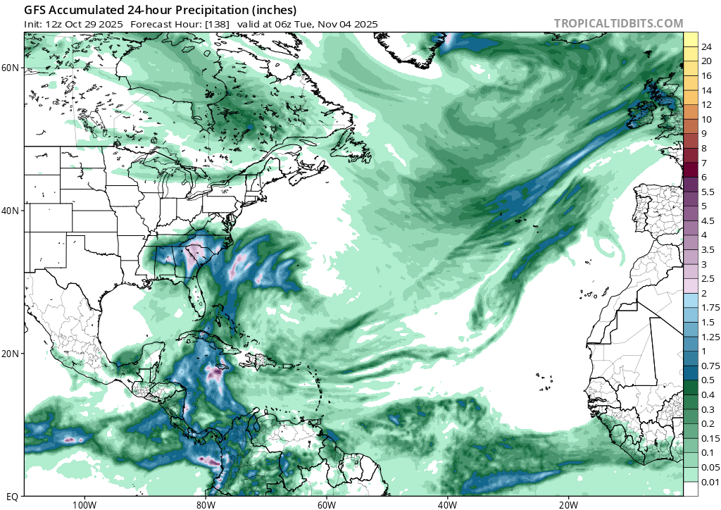 Indirectly though its possible the wave may rather precondition the mesoscale environment to be a bit moister based on the timing for any Nov 5-8 genesis between Nicaragua (originating W, NW of Colombia).
