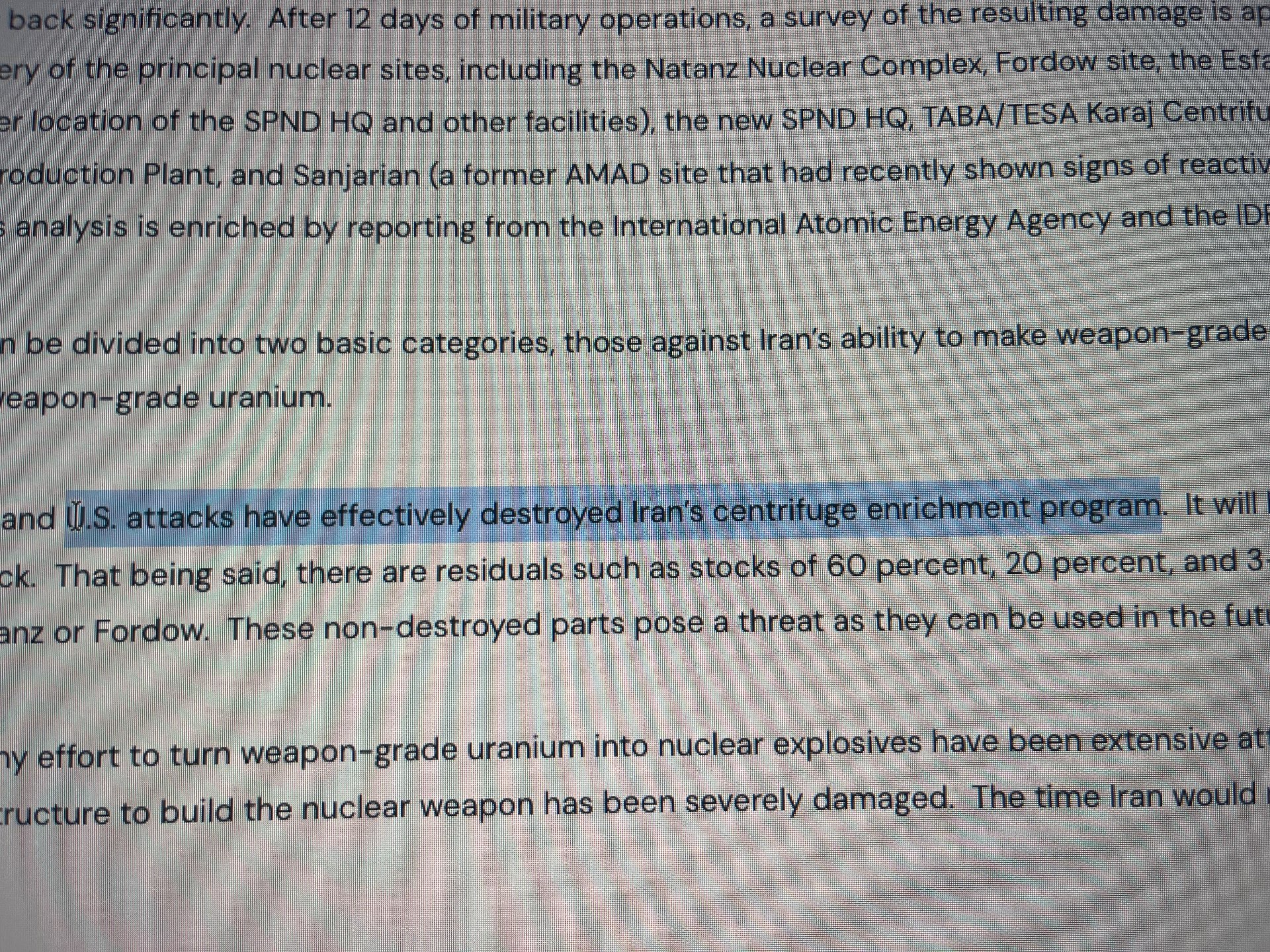 The Institute for science and international security claimed that the whole site was basically destroyed, which I assume as much more than two centrfuges