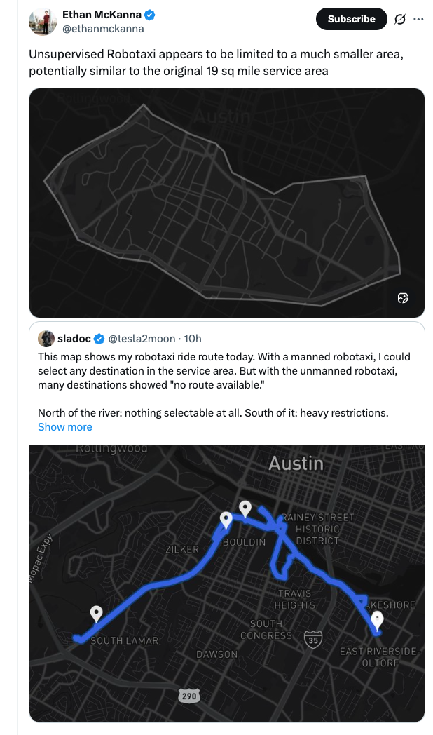 Seems like the unsupervised rides are happening inside a part of the current service area https://x.com/ethanmckanna/status/2017799555920634201