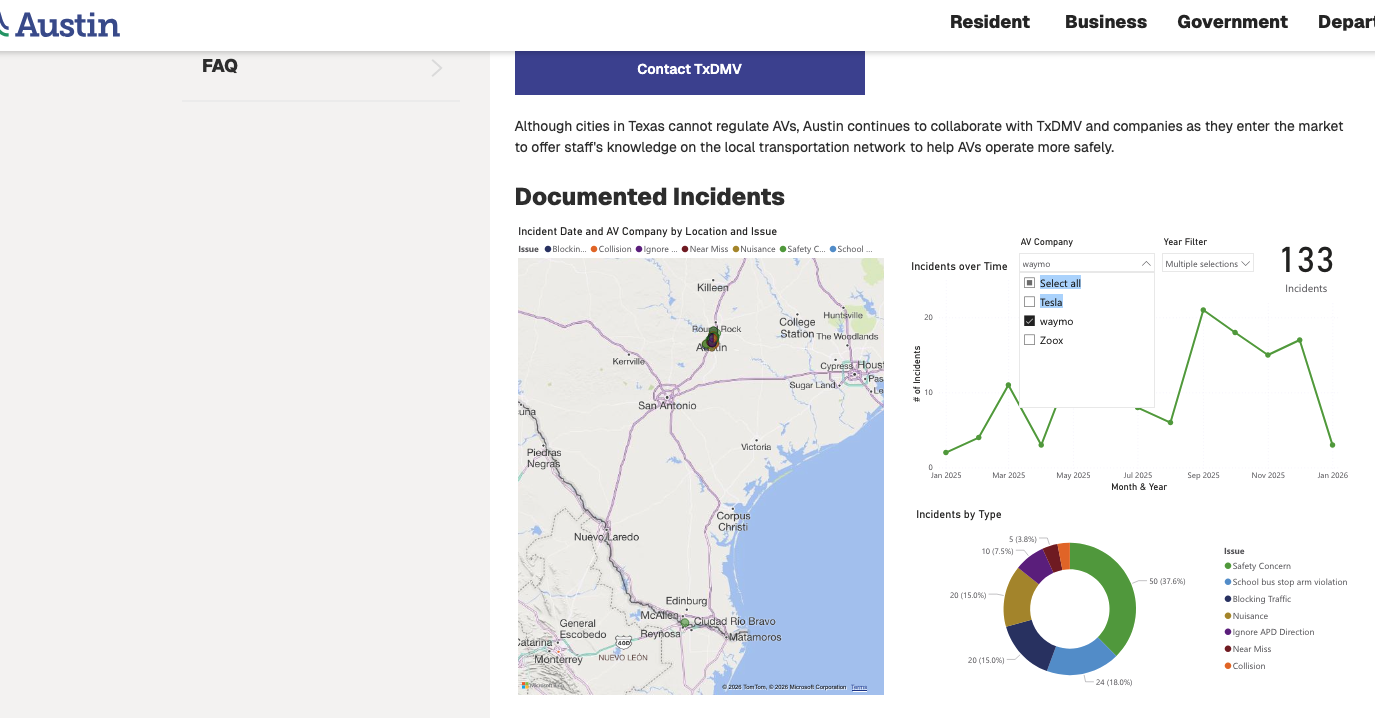 Waymo has 5 collisions and and 6 near misses in Austin out of 130 incidents.