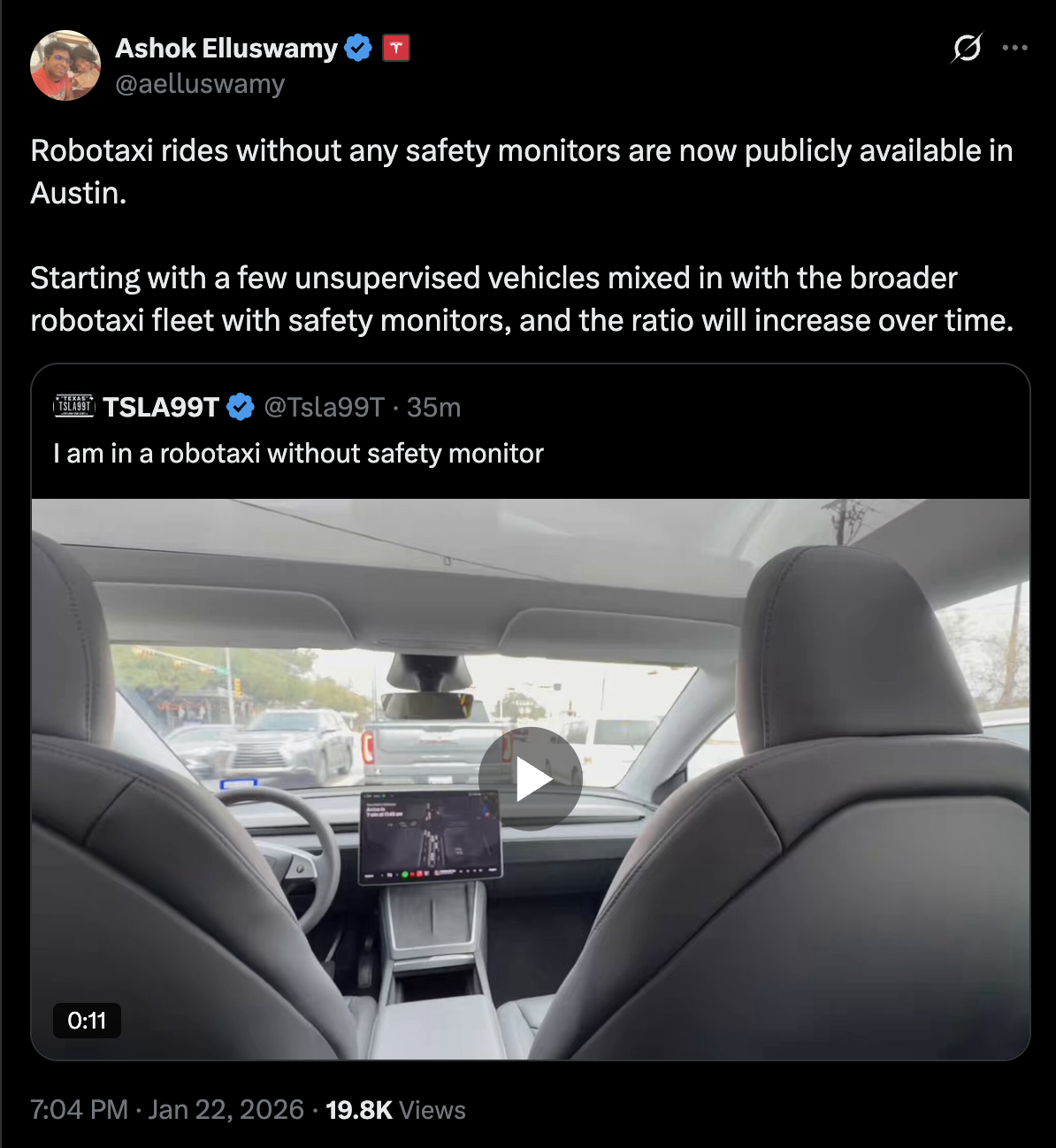 More unsupervised rides happening today https://x.com/tesla2moon/status/2017637536332390439