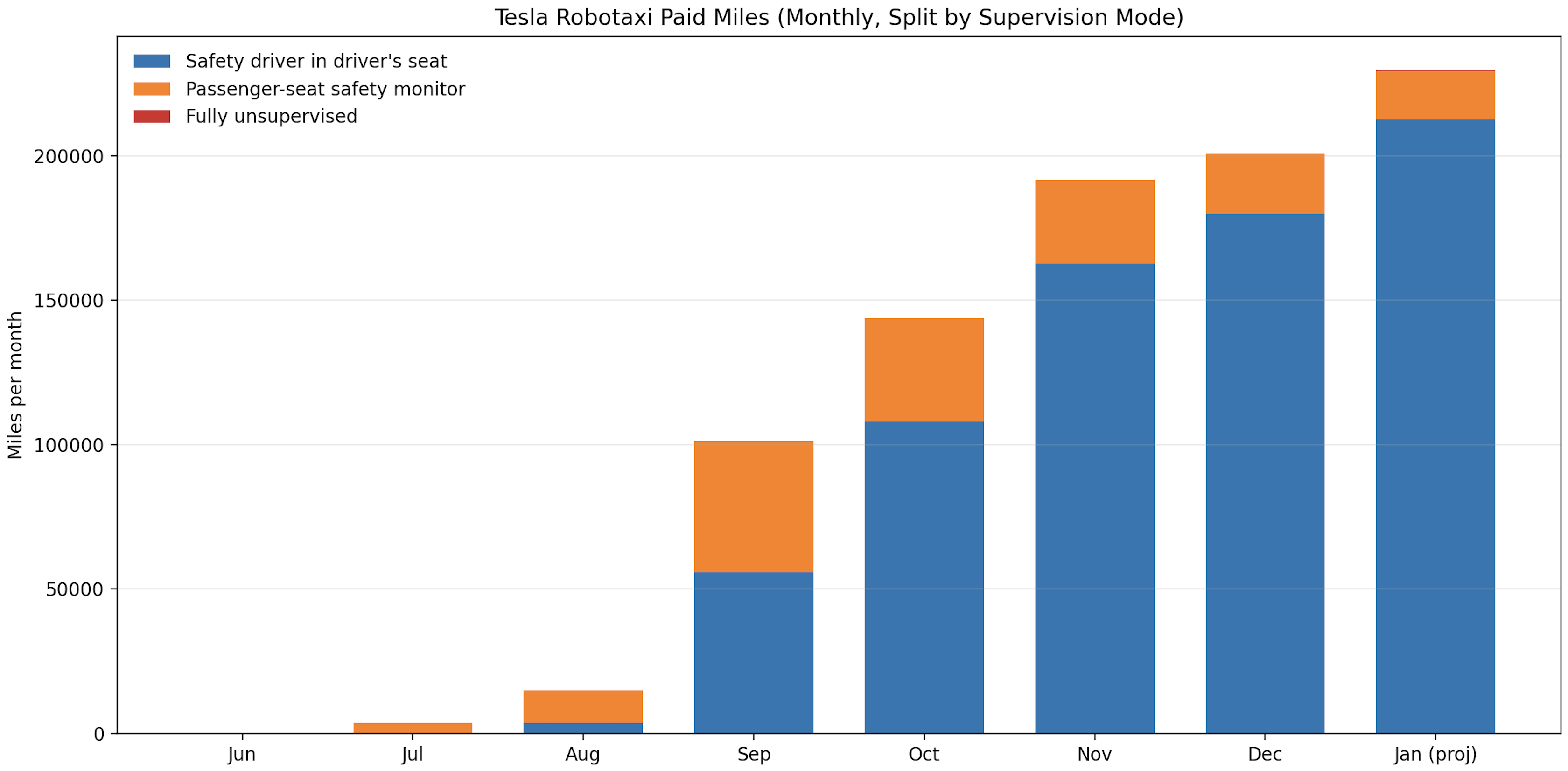 Or we could calculate the number we really want: customer paying taxi miles with no safety monitor present as 0 to 21st Jan 2026 (or ~26th Jan 2026 if we insist on no chase car).