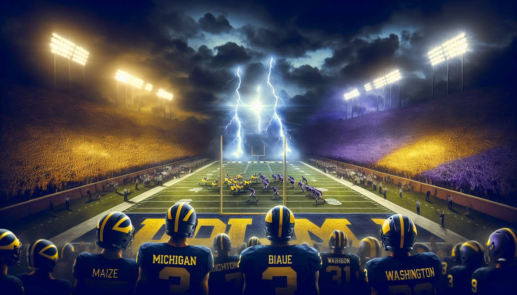 Resolves YES when the game kicks off with either or both Michigan and Washington competing.