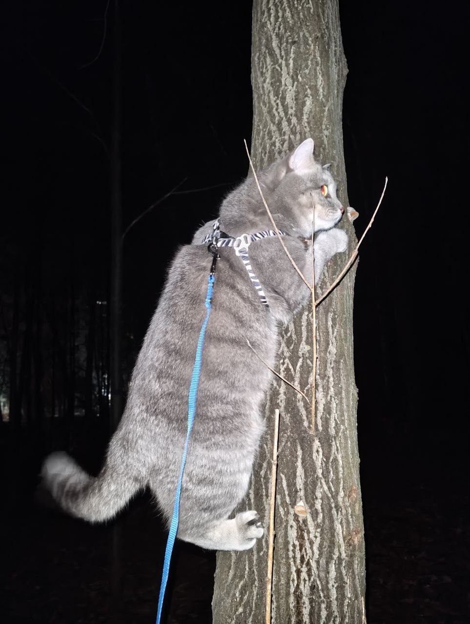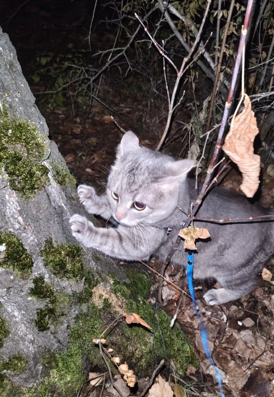 Another walk today. We met a golder retriever, cat even climbed the nearest pine to avoid him, hissed a little