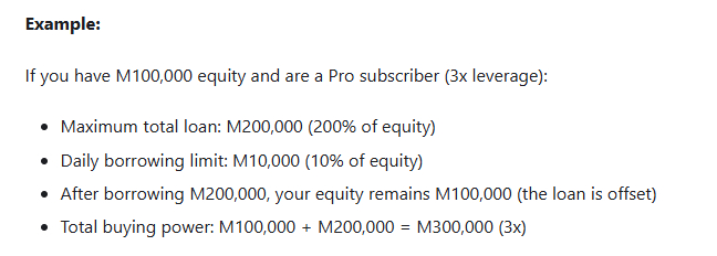 Users can access margin loans at any time to borrow mana to trade with from your user profile