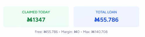 @JussiVilleHeiskanen I don't think the timing of your trades are relevant to the loan calculation. I'm thinking sometime overnight the system determines your daily loan for each market, then gives you that amount when you click the button.