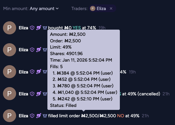 @ian If you are doing candy today then a really really really really good one is to add tooltip on hover or click to the Trades tab on all markets -- we should be able to see the basic stats of the trade from the UI without needing to go find the bets API: