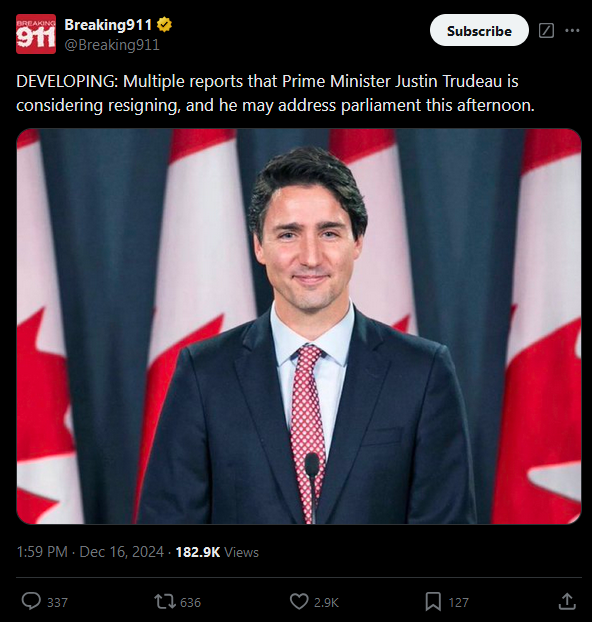 Will Trudeau announce he will resign by the end of 2024?
