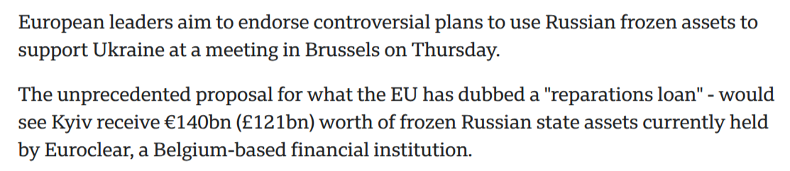 @theservy this counts right? Russian assets used directly and officially as reparations payments to Ukraine, just without the consent of the current Russian regime